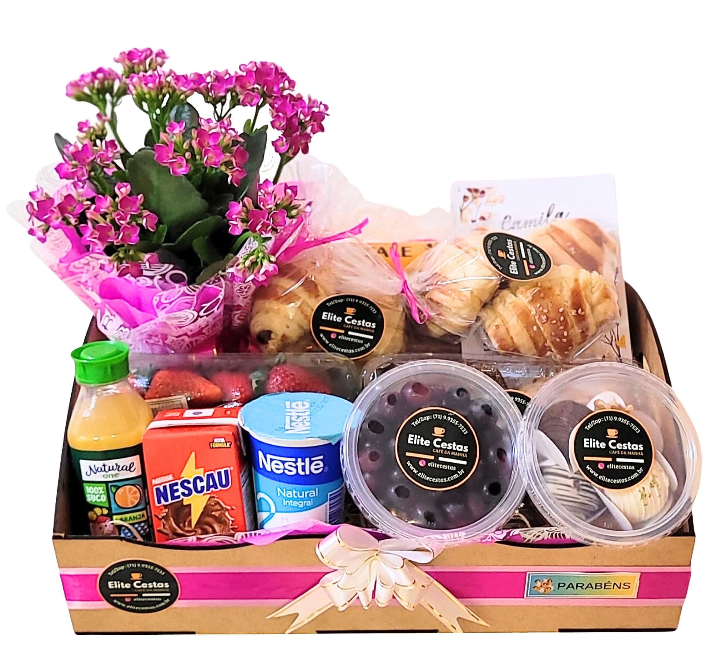 Bem-vindo à nossa loja! Somos apaixonados por transformar momentos especiais em memórias inesquecíveis. Especializados em cestas de café da manhã e flores, oferecemos uma variedade de opções para todas as ocasiões: cestas românticas, de aniversário, infantis, happy hour, além de pelúcias e presentes personalizados. Nosso compromisso é proporcionar experiências encantadoras, com produtos de alta qualidade, apresentação elegante e um atendimento acolhedor.