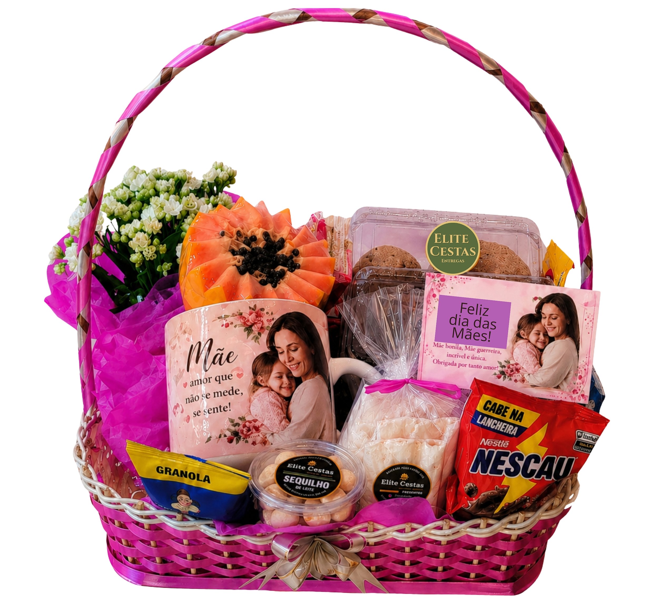 Demonstre todo o seu amor neste Dia das Mães com a Cesta Carinho de Mãe Elite, preparada com delicadeza para emocionar e surpreender quem sempre cuidou de você. Um presente especial, cheio de sabor, beleza e carinho para começar o dia de forma inesquecível.