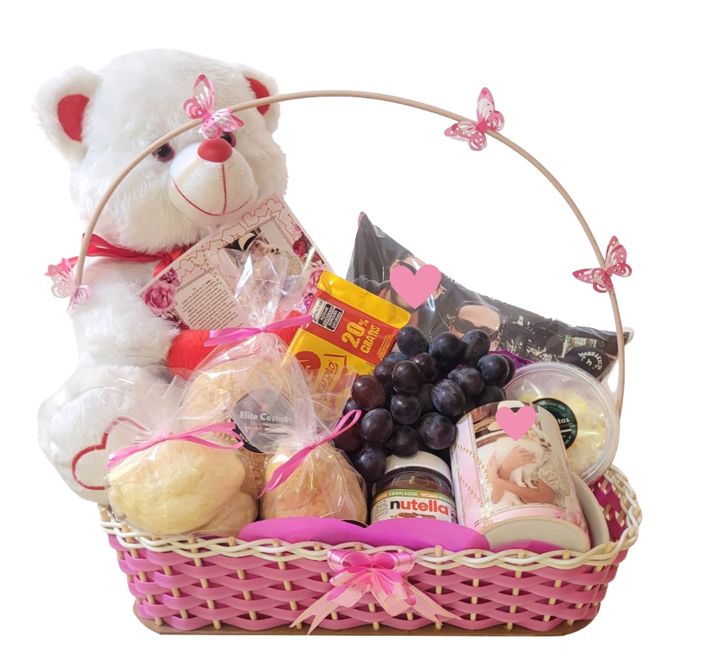 Surpreenda quem você ama com esta linda e completa Cesta Premium Elite, preparada com todo carinho para tornar qualquer momento inesquecível. Apresentada em um belo cesto rosa com detalhes delicados, ela combina beleza, sabor e afeto em um único presente.